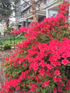 azaleas and houses