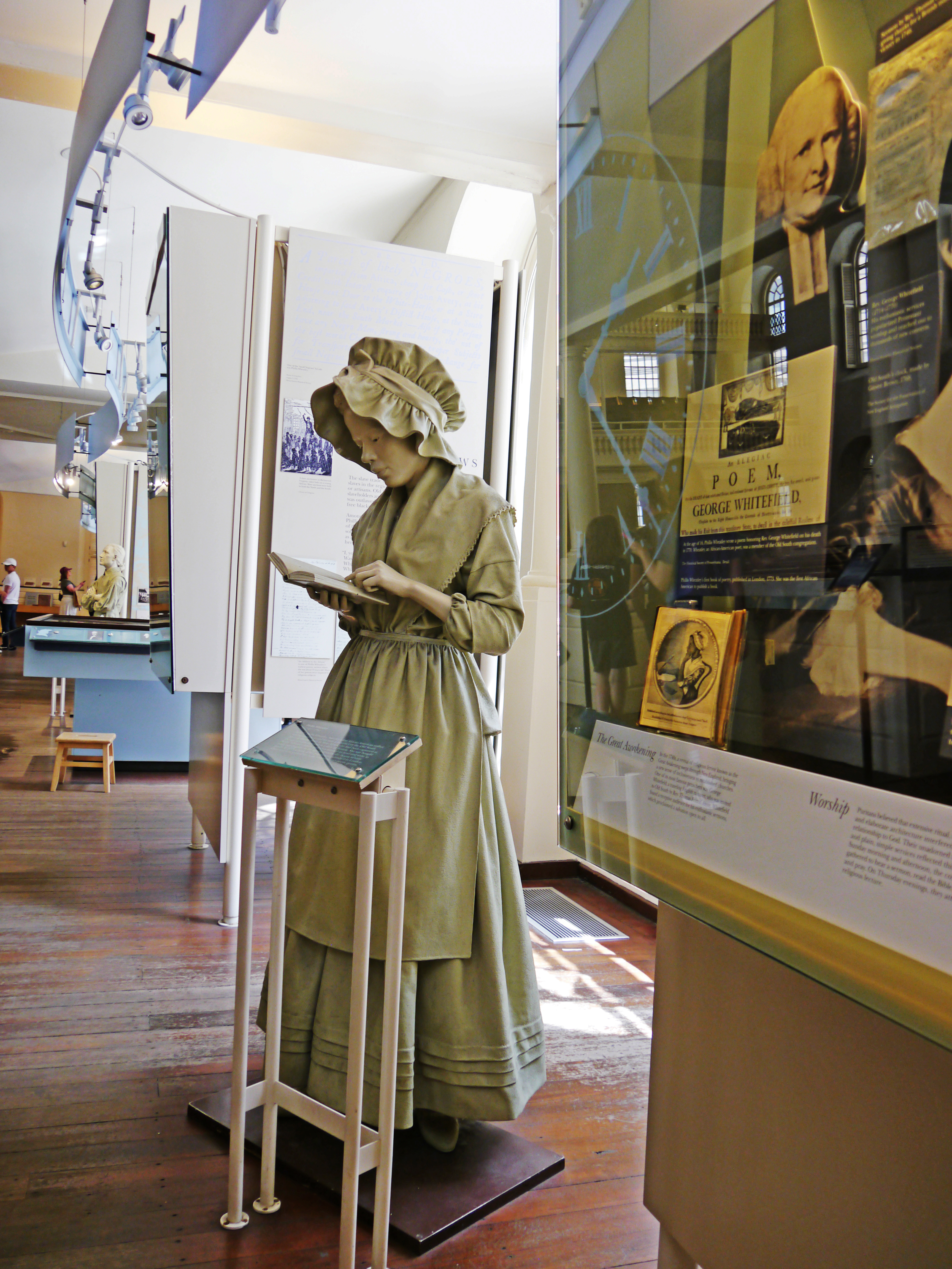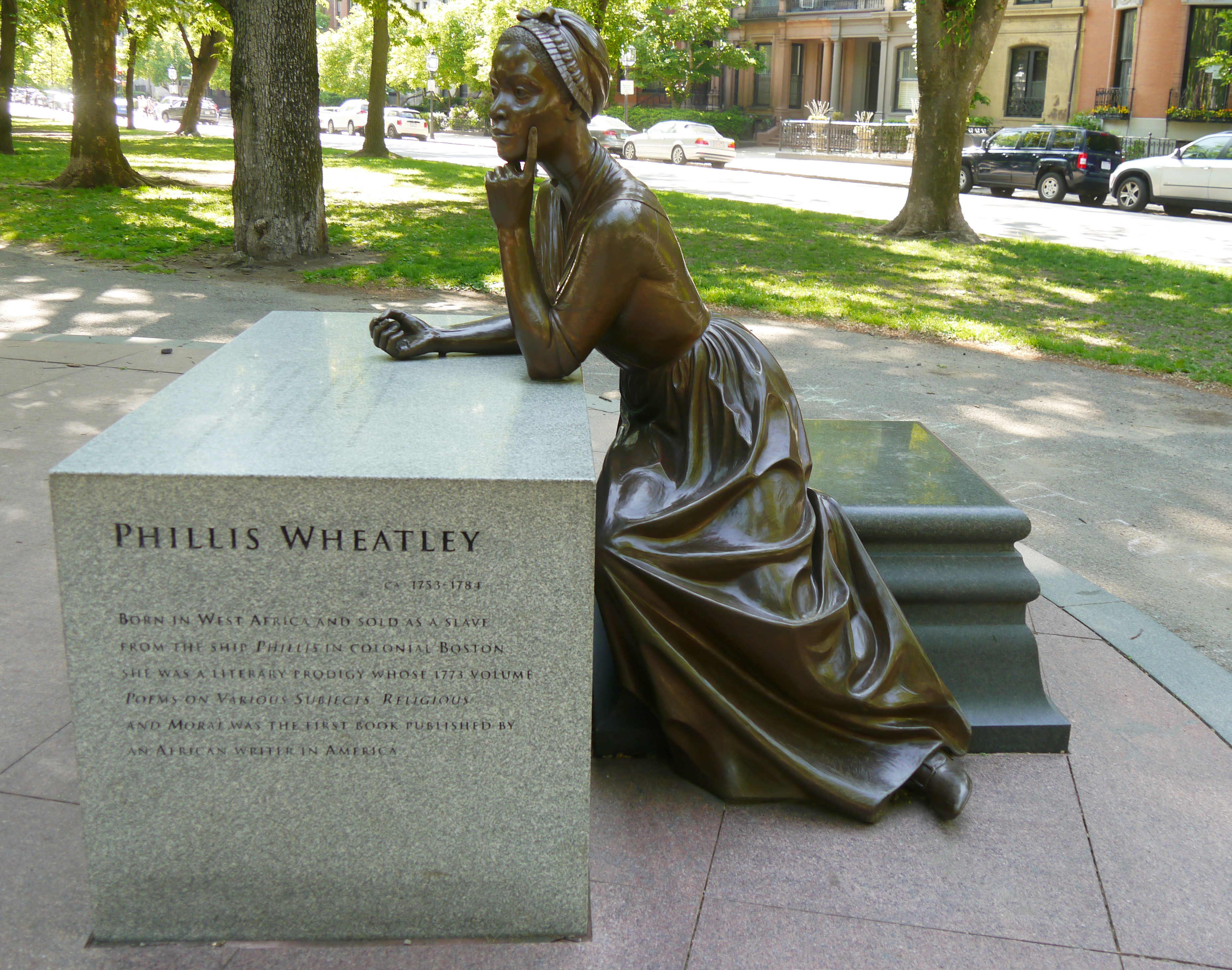 As one of the codirectors of a year-long initiative honoring the life and work of Phillis Wheatley Peters, I’m pausing this week to reflect on our collaborative project’s progress. Reflection, after all, is a habit of mind and an action that representations of Wheatley Peters herself tend to associate with her writing and her life, as seen in the Boston Women’s Memorial‘s portrayal of her.